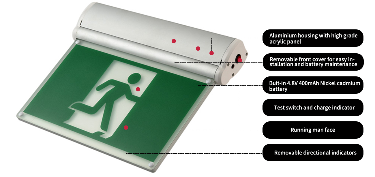 Alüminyum 6 inç koşan adam LED acil durum çıkış işareti CSA sertifikalı